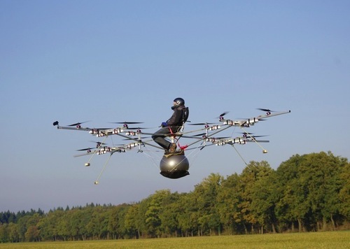 First manned multicopter takes flight, brave human sits amidst blades (video)
